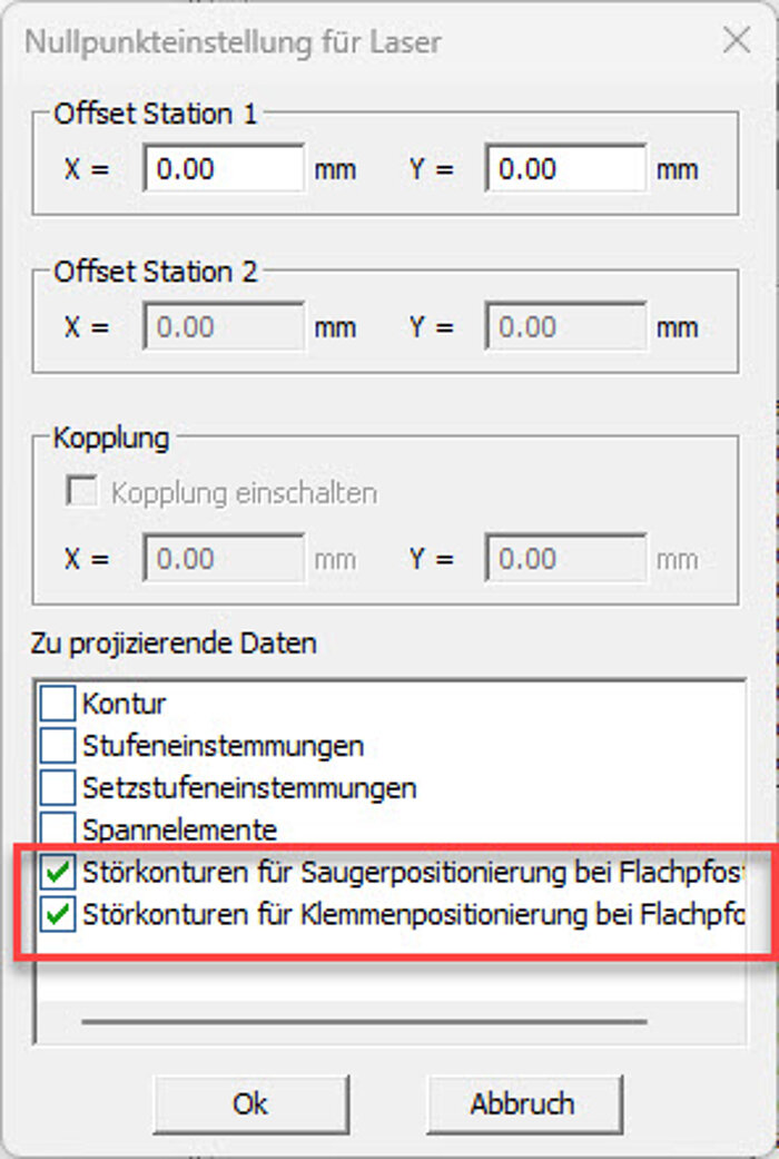 Für das Laserbild von Stufen lassen sich durchgehende Bohrungen in den Einstellungen aktivieren.